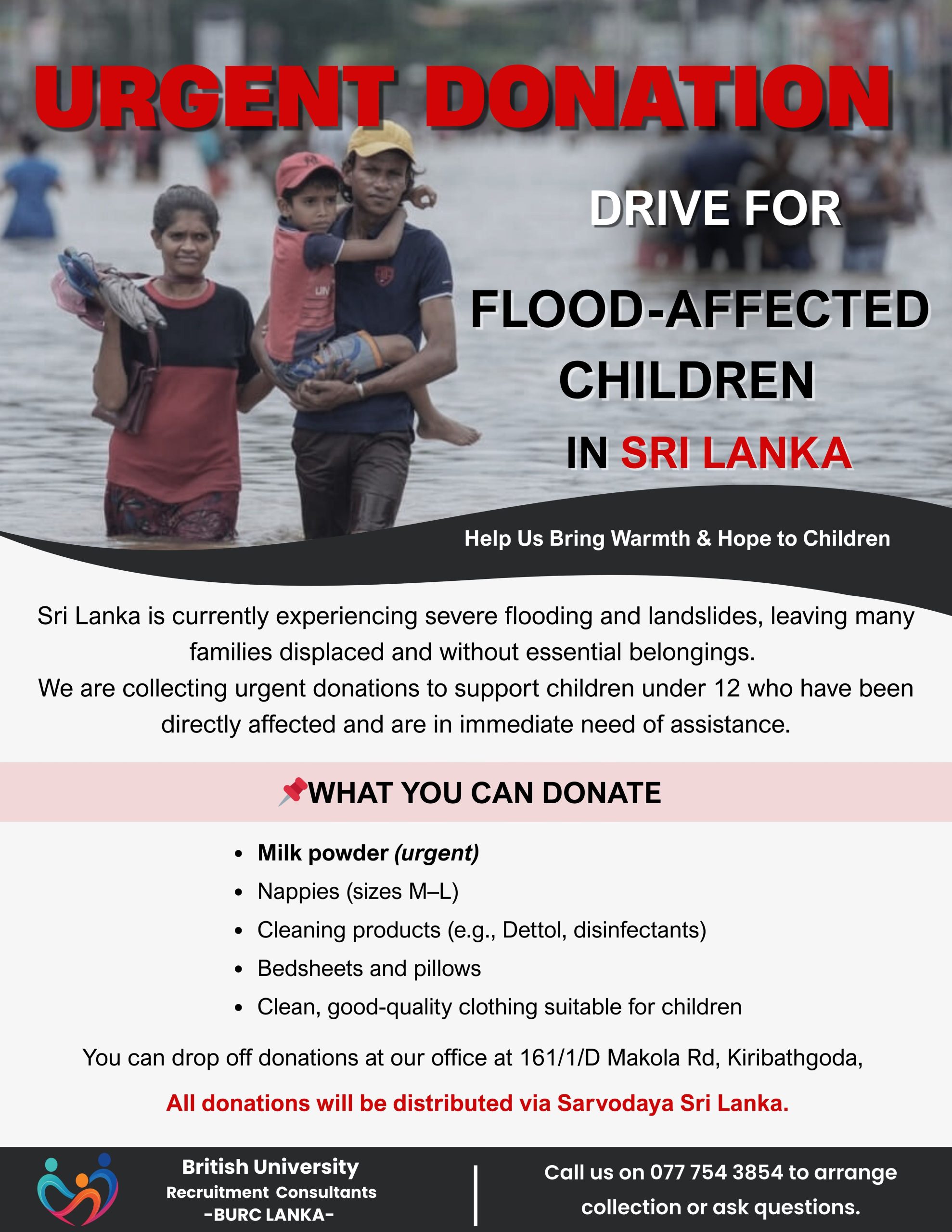 At BURC Lanka, we believe that even small acts of kindness can make a profound difference. That’s why we are launching a donation drive to provide immediate support for these children. Our aim is to bring warmth, comfort, and a sense of hope during these difficult times.
